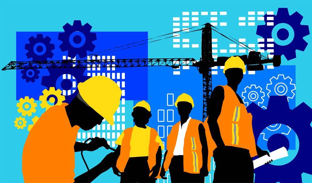 Inginerii, arhitecții și coordonatorii de șantier lucrează adesea hibrid, cu supraveghere video și instrumente online.